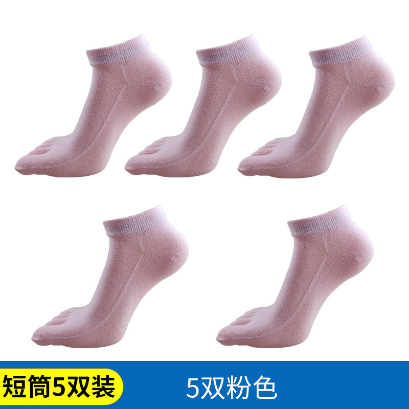 恒源祥五指袜女士纯棉薄款分趾袜子女防臭吸汗春秋全棉中筒袜秋冬_849 均码M(34-39码) 【短筒款】5粉色