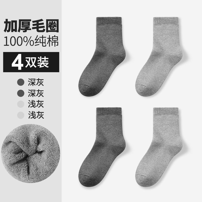恒源祥男士毛圈袜子纯棉秋冬季厚款加厚加绒毛巾底中筒袜_195 均码(38-44码) 【纯棉加厚加绒】2深灰2浅灰