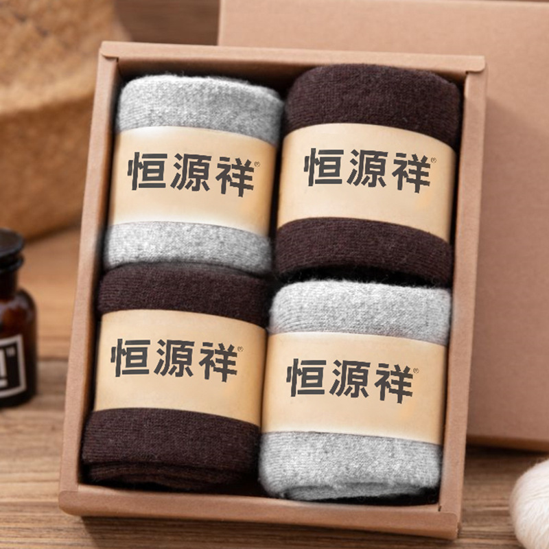 恒源祥加厚羊毛袜子男士秋冬季德绒发热防寒超厚中筒袜冬天保暖袜_554 均码【羊毛加厚毛圈发热】 【纯色】2深棕2浅灰