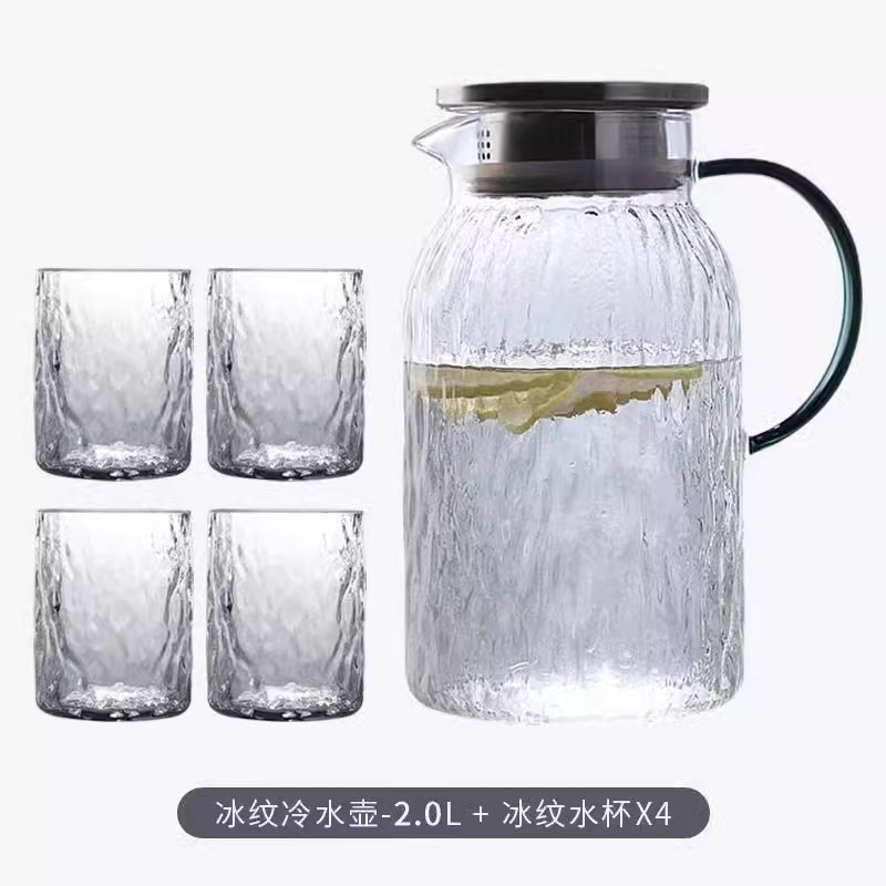 冷水壶耐高温树纹家用凉水壶杯大容量客厅玻璃壶泡茶壶套装高颜值 树皮纹冷水壶2.0L+4只树纹杯