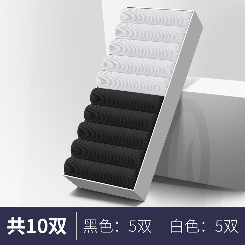 恒源祥男士丝袜短袜冰丝中筒防臭春秋薄款超薄隐形全透明男袜夏季 均码 【10双装】黑色5+白色5