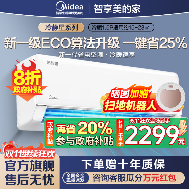 美的(Midea)空调1.5匹p酷省电Pro新一级能效变频冷暖壁挂式家用卧室智能挂机KFR-35GW N8KS1-1P