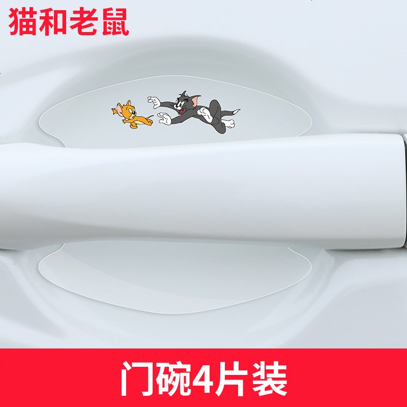 车把手贴防刮汽车拉手划痕贴透明碗防护贴可爱卡通漆面保护贴 透明款【猫和老鼠】【_碗4片装】