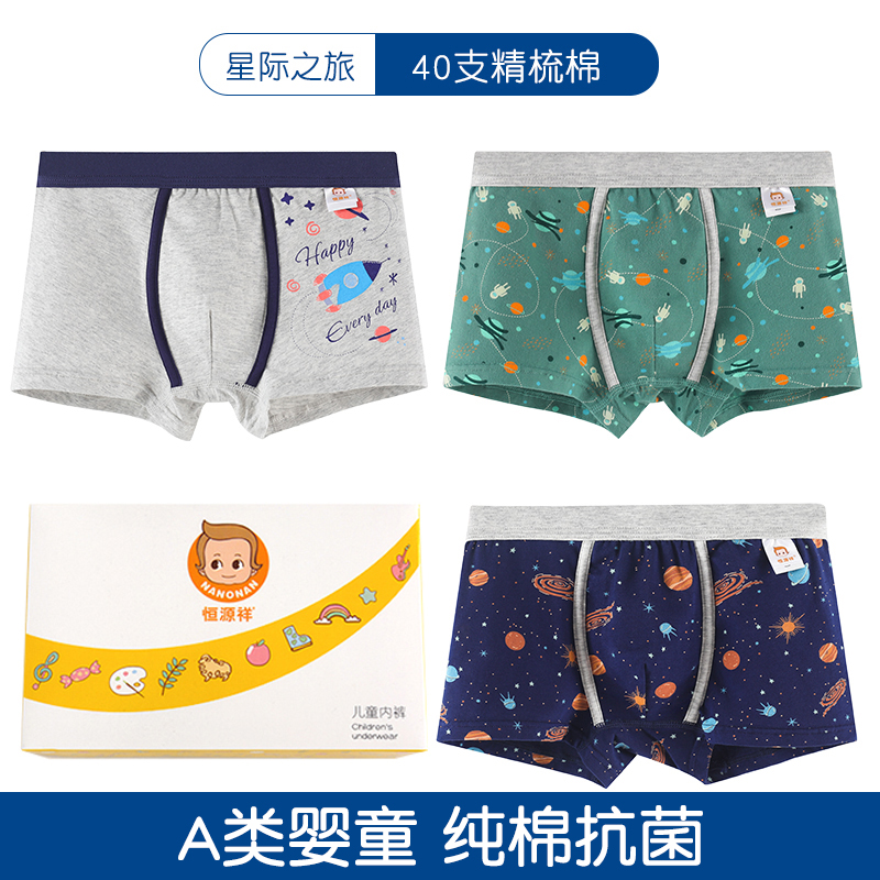 恒源祥儿童内裤纯棉男童平角短裤四季棉卡通小童中大童三角裤男 170cm 星际之旅【A类纯棉平角裤】