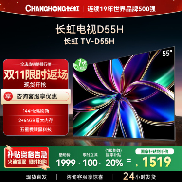 长虹55D55H 55英寸144Hz高刷新 云帆AI影像 60W峰值功率音响 超高清4K平板电视政府补贴