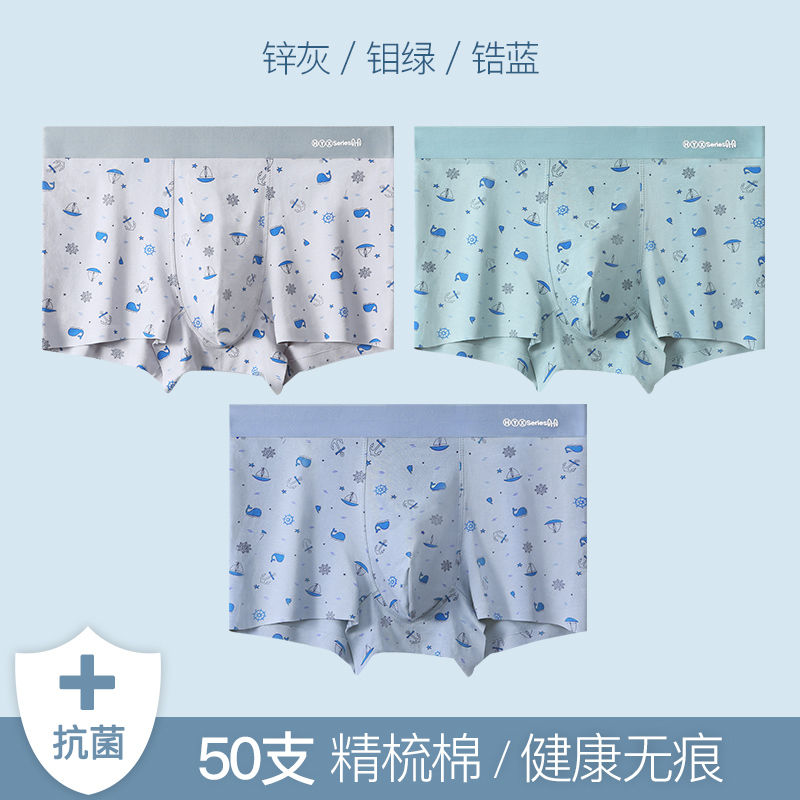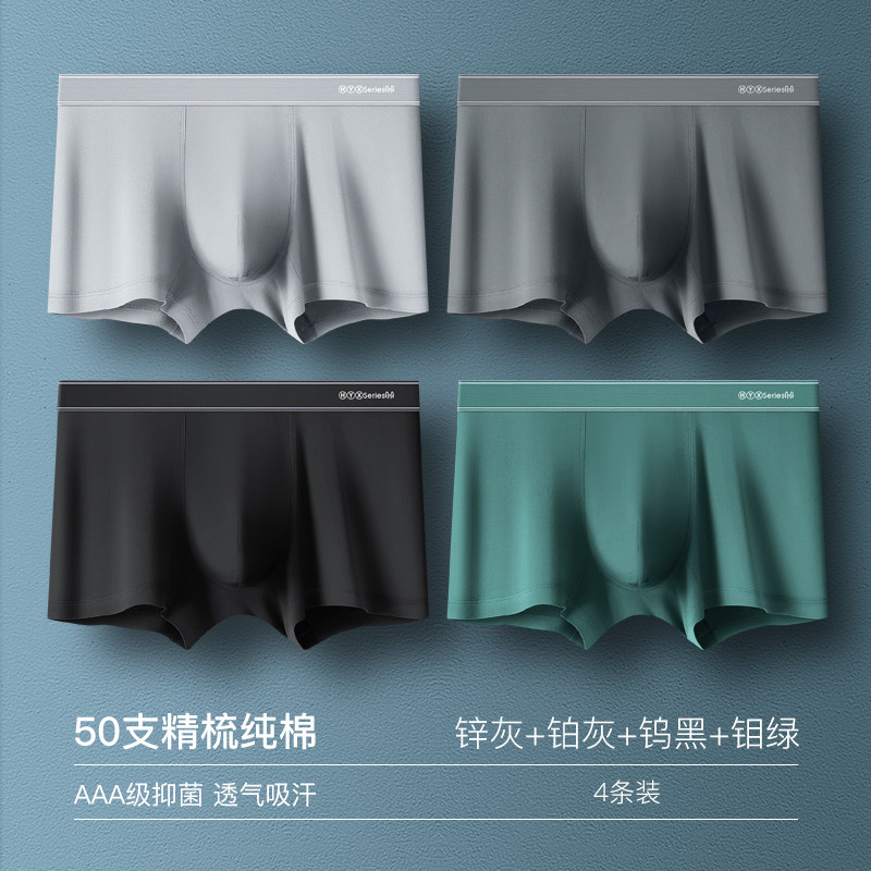 恒源祥男士纯棉内裤男石墨烯四角裤衩男生大码宽松平角短裤头_103 175/XL 4885【纯棉抗菌】钨黑/铂灰/锌灰/钼绿