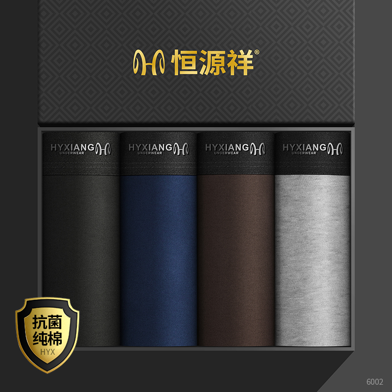 恒源祥男士本命年红内裤男纯棉大码平角裤透气结婚礼盒装四角裤潮 3XL185/110 【如意吉祥】4条装