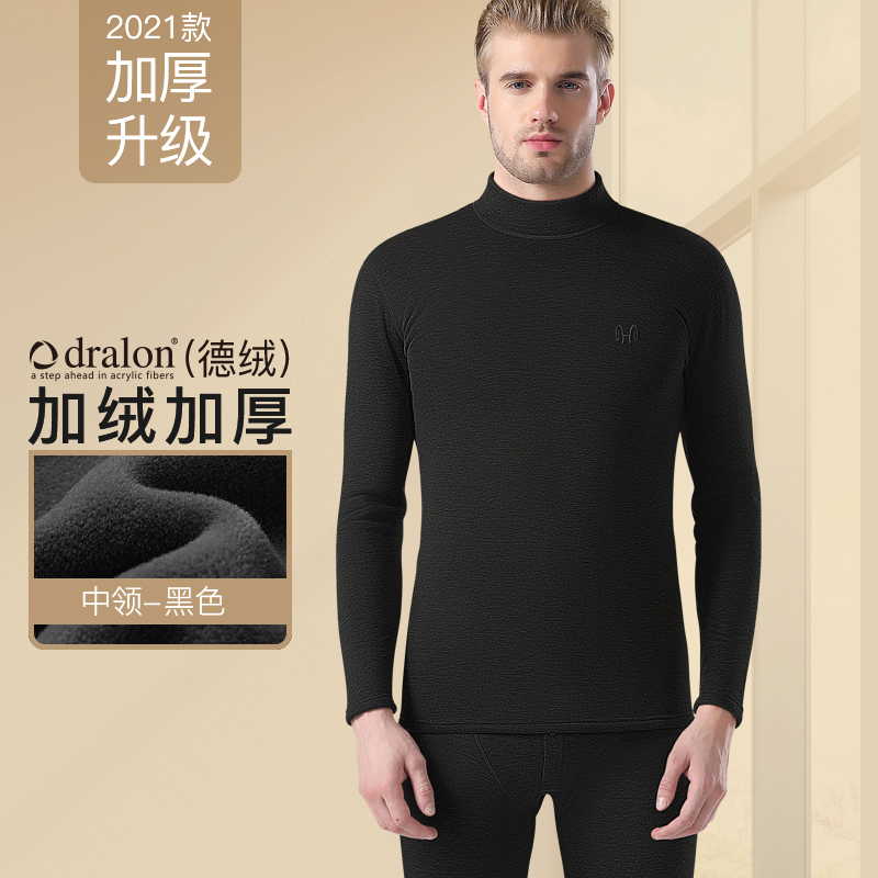 恒源祥保暖内衣男士德绒发热套装加绒加厚打底秋衣裤秋裤冬季内穿_481_572 180/2XL【德绒发热AAA抗菌】 【中领】黑色