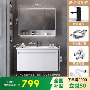 邦云浴室柜组合岩石一体盆浴室柜组合卫生间洗脸盆面盆浴室镜卫浴洗手盆面盆洗漱台洗手台浴柜洗手池挂墙式智能镜柜 80CM普通吊柜 包安装