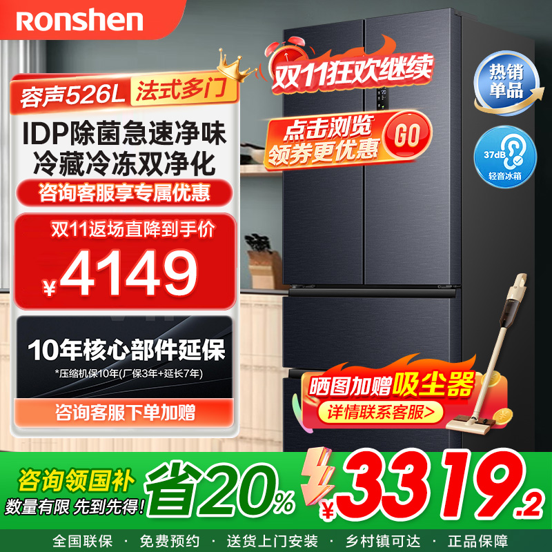 容声(Ronshen)501Pro十字四门IDP双净双系统冰箱风冷无霜变频家用[501升级款]BCD-501WD3FPZ