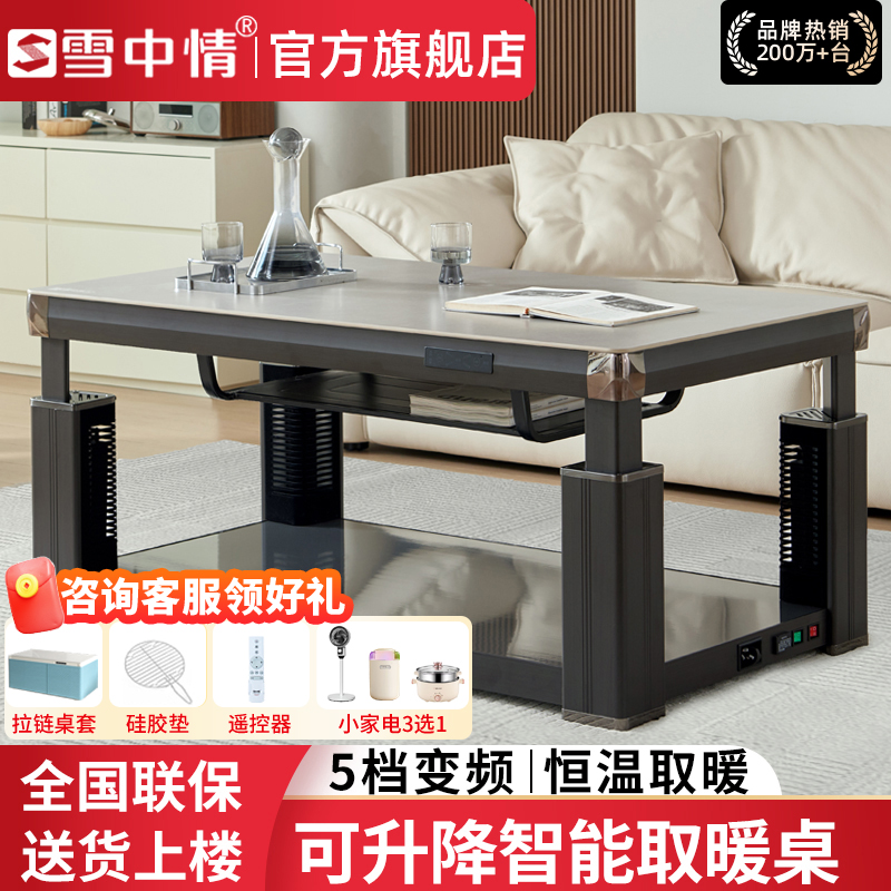 雪中情电暖桌取暖桌电暖炉烤火桌茶几一体升降电暖茶几家用客厅长方形烤火炉电炉取暖器电暖器电茶几岩板带语音控制