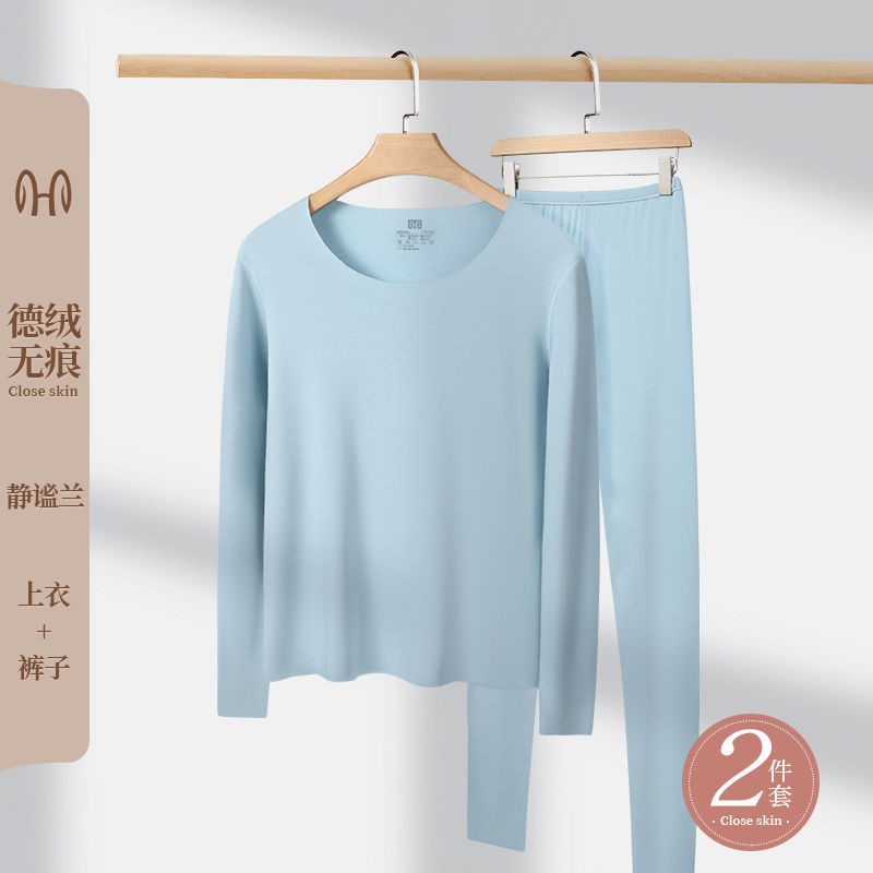 恒源祥女士保暖内衣套装德绒发热无痕打底内穿修身秋衣秋裤女冬季_690 180/2XL /德绒无痕-【1上衣+1裤子】静谧兰