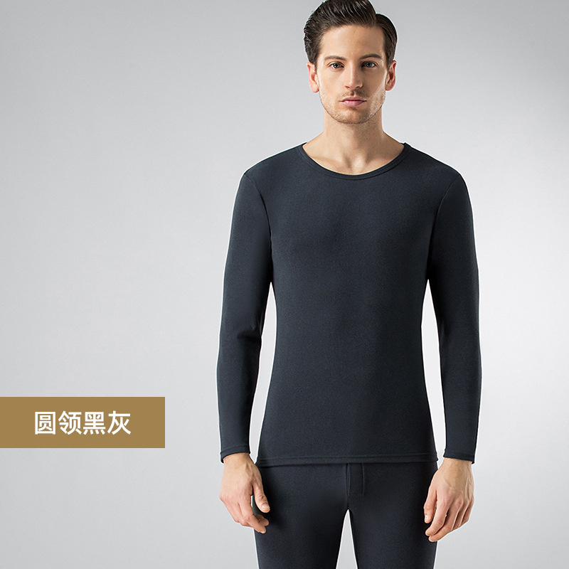恒源祥恒温保暖内衣套装男秋衣秋裤冬季男士青年打底棉毛衫_332 185【圆领双面磨毛,AAA级抗菌】否 圆领-黑灰