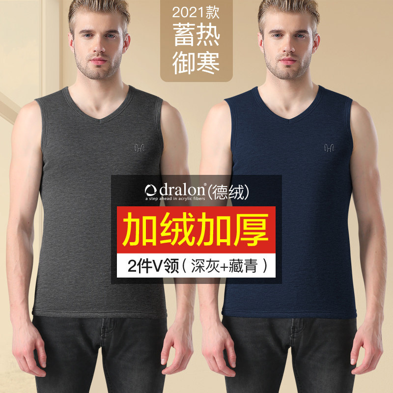 恒源祥男士保暖内衣德绒发热背心冬季内穿上衣加绒加厚上身打底衫_540 170/L 【V领】深灰+藏青