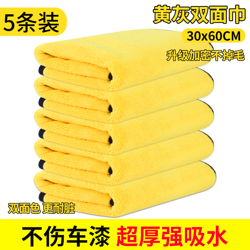 洗车毛巾擦车布专用吸水加厚车内饰大号抹布不掉毛不留痕汽车用品 A30×60cm【超厚双面色】5条装