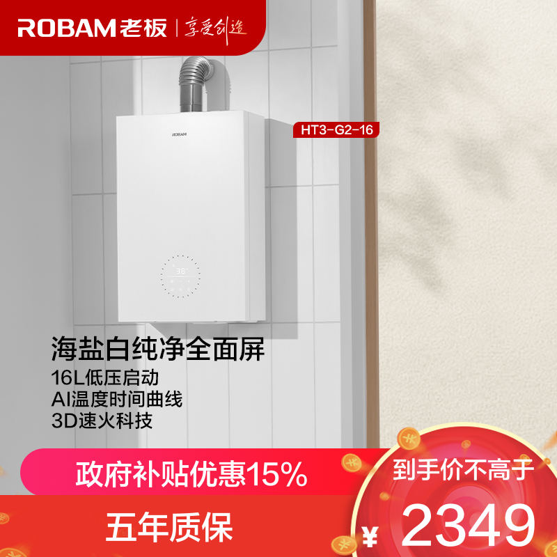 老板(Robam)[国家补贴以旧换新]盐系燃气热水器天然气16升低压启动增容水伺服恒温瀑式洗 HT3-G2-16