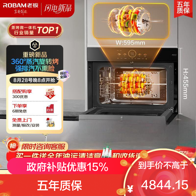 老板(Robam)小贝果D1微蒸烤炸蒸烤箱一体机嵌入式蒸箱烤箱微波炉4合1幻彩屏