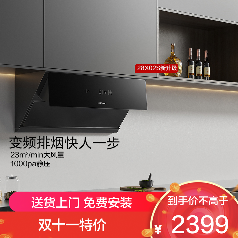 老板(Robam)23m³抽油烟机单烟机吸油烟机侧吸式大吸力脱排油烟机自营免拆洗近吸式油烟机28X02S