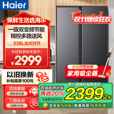 海尔(Haier)541升对开门双开门 一级变频节能 风冷无霜大容量嵌入式家用冰箱 新品BCD-541WGHSSEDG7