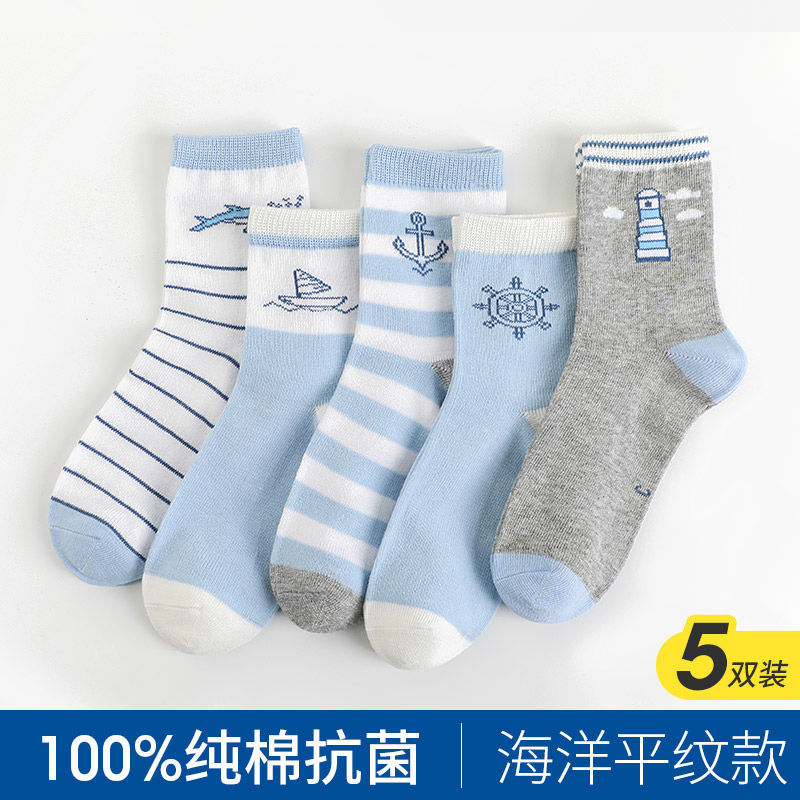 恒源祥儿童袜子纯棉男童宝宝中筒袜春秋款中大童小学生男孩棉袜_175 10-12岁(脚长20-22cm) 3910-2海洋平纹款