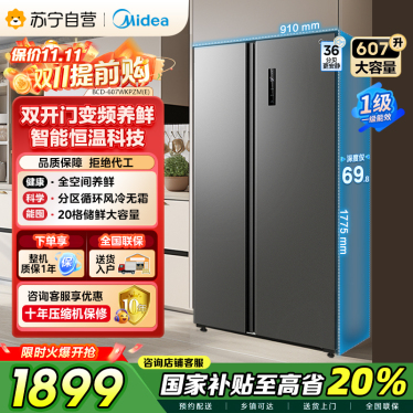 美的(Midea)607升对开门冰箱双变频一级能效家用超薄电冰箱智能净味无霜BCD-607WKPZM(E)大容量