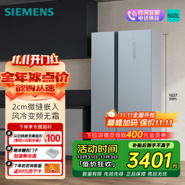 [超薄嵌入]SIEMENS 西门子502L风冷无霜纤薄对开门冰箱BCD-502W KX50NA43TI