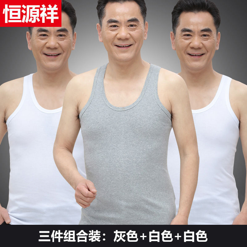 恒源祥中老年人男士背心男纯棉爸爸大码老头汗衫宽松打底汗衫内穿_1 165(M) 白色+白色+灰色