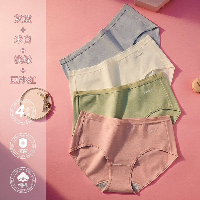 恒源祥女士内裤女纯棉棉透气夏季薄款中腰少女无痕三角裤头 160/M 灰蓝+米白+浅绿+豆沙