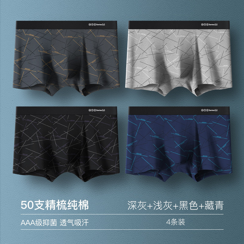 恒源祥男士纯棉内裤男石墨烯四角裤衩男生大码宽松平角短裤头_103 170/L 4772【纯棉抗菌】黑色/藏青/深灰/浅灰