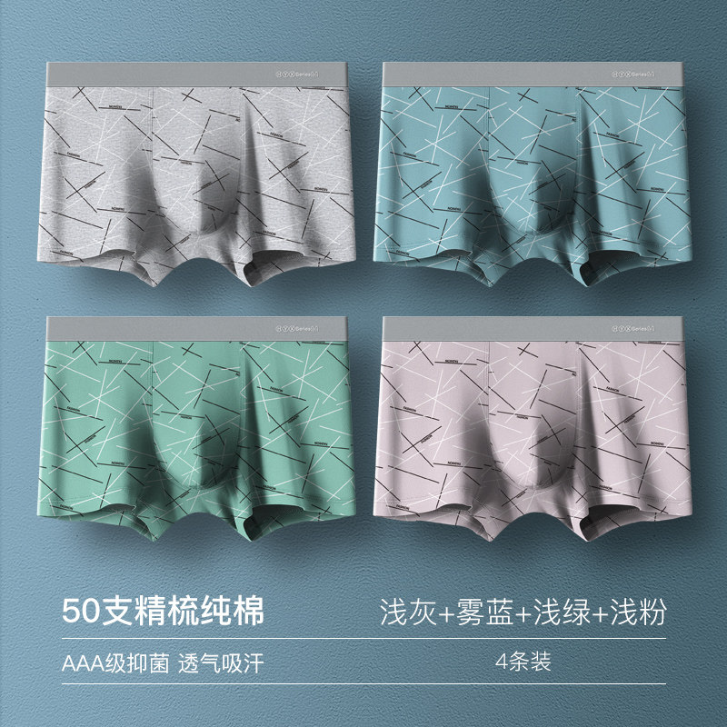 夏季内裤男冰丝中腰无痕透气速干男士四角裤青年大码宽松平角裤头