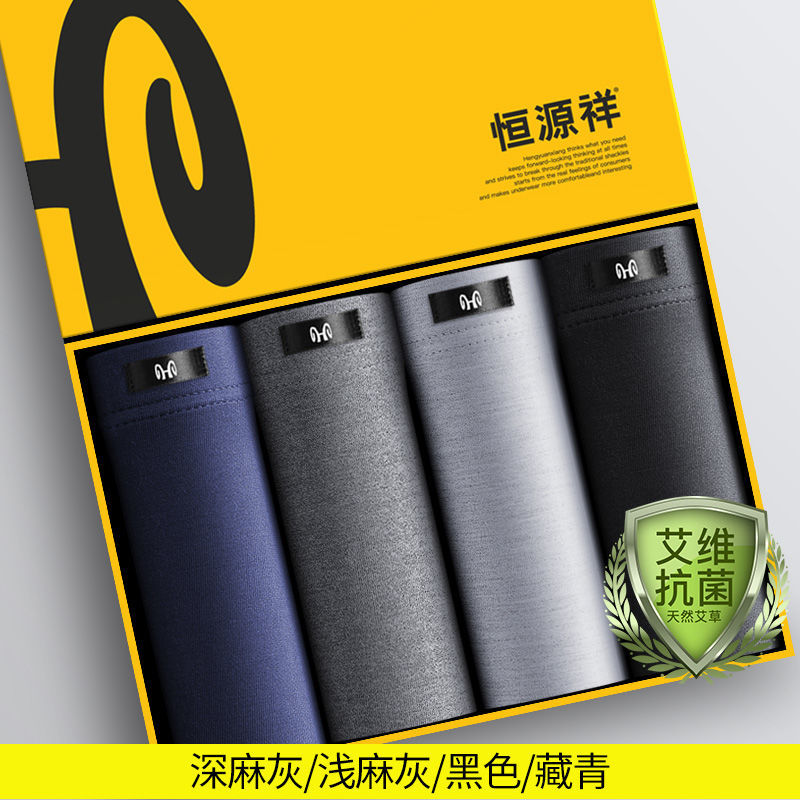 恒源祥男士内裤纯棉平角裤短裤大码男生全棉四角裤头_1 175/XL 4760深麻灰+浅麻灰+黑色+藏青