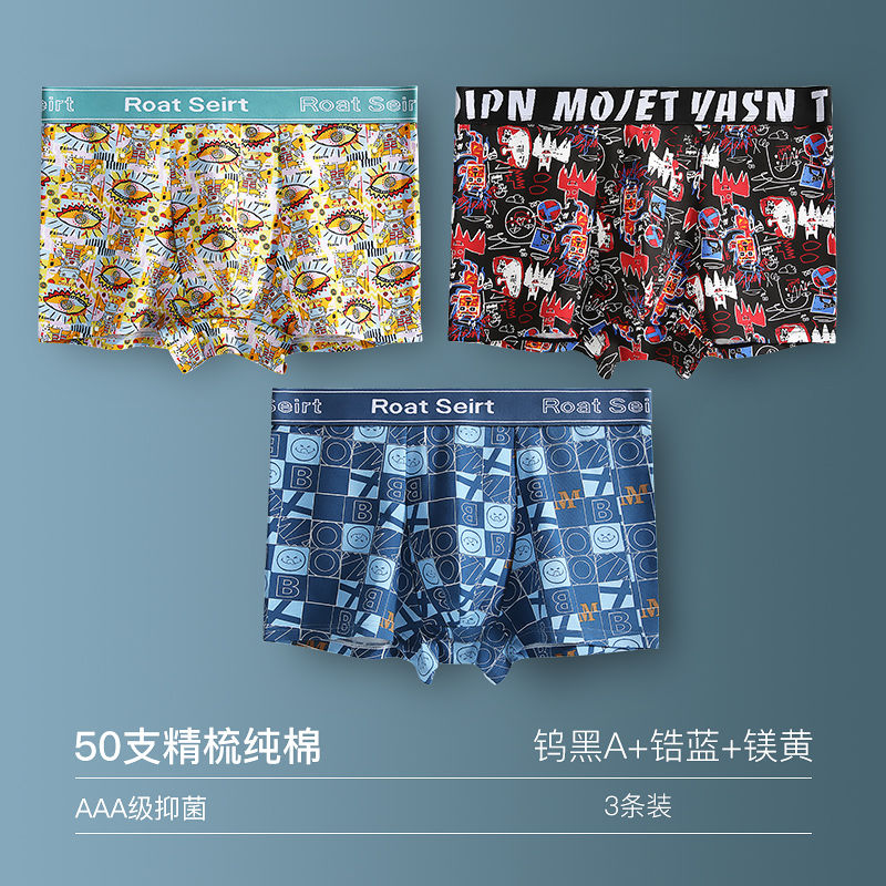 80支莫代尔男士内裤 ins风印花男士内裤 7A裆男士四角内裤