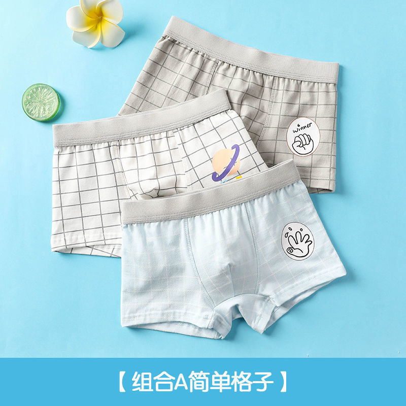 恒源祥儿童内裤男女童纯棉平角四角短裤头棉宝宝小童中大童夏季_669 高150/160cm重70/80斤 简单格子【男】