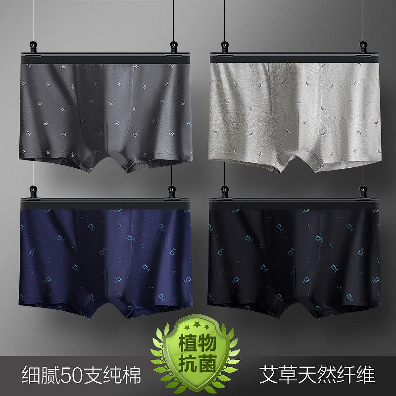 恒源祥男士内裤男平角裤纯棉夏季透气四角短裤头全棉裤衩潮流_709_510 190/4XL AAA级植物抗菌【宽边印花1184A】深灰/浅灰/藏青/黑色