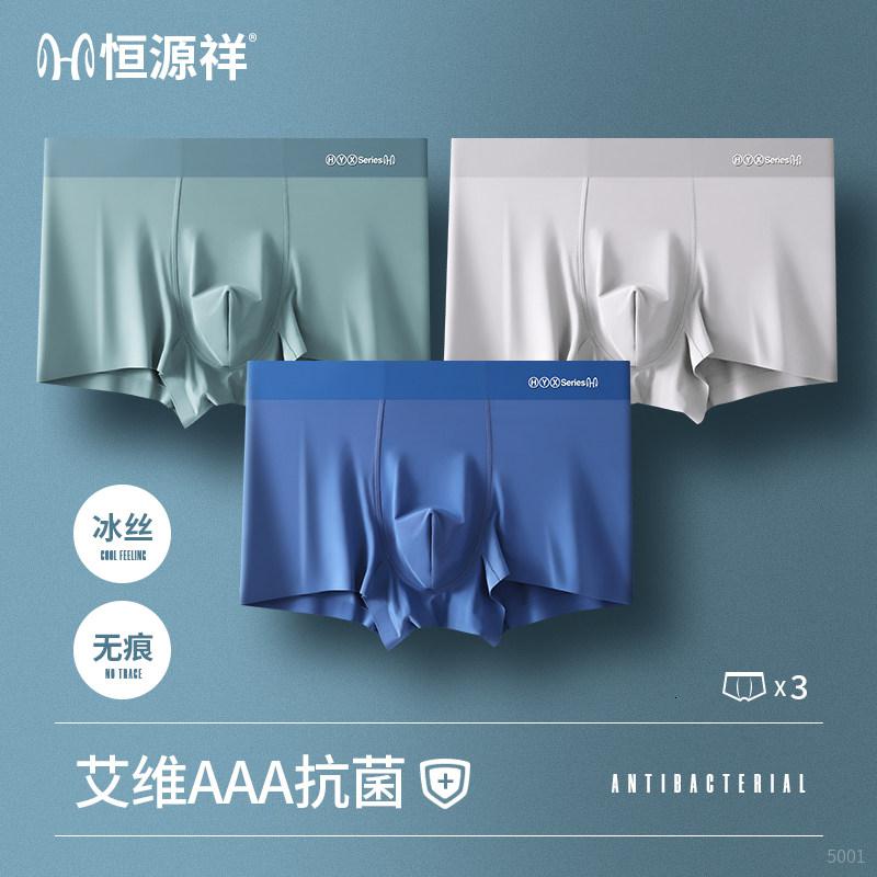 恒源祥男士平角内裤男无痕冰丝透气四角裤男生潮流短裤头夏季_981 L 【无痕冰丝AAA级抗菌】蝴蝶兰+豆绿+银灰