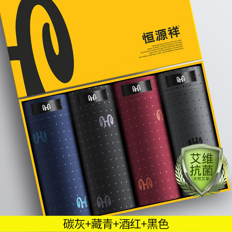 恒源祥纯棉男士内裤平角裤加大码全棉四角短裤头夏季潮流男生_449 185/3XL 41A碳灰+藏青+酒红+黑色