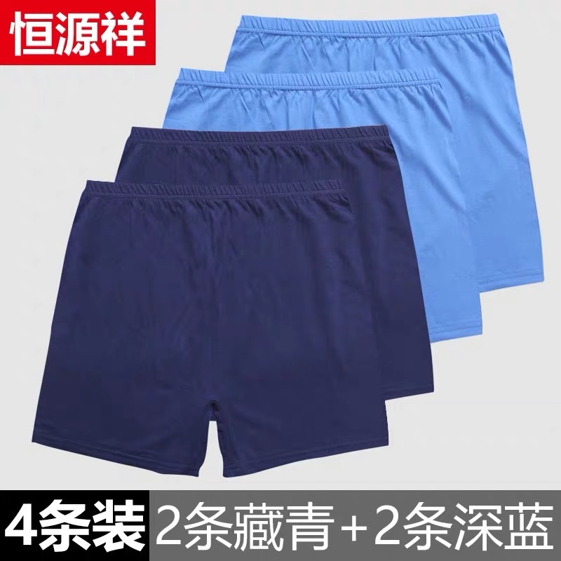 恒源祥内裤男士平角裤纯棉中老年人四角裤加大码宽松全棉爸爸短裤 4XL170斤左右 淡青色2条藏青+2条深蓝