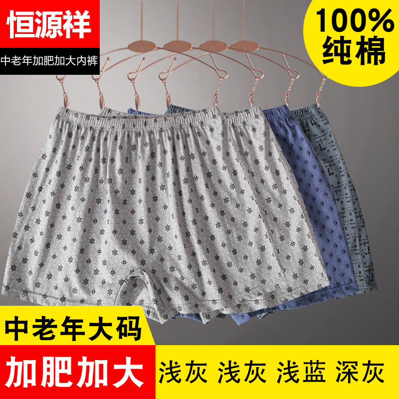 恒源祥男士内裤纯棉平角裤加肥加大宽松高腰爸爸短裤男中老年人_203 XXL 浅灰+浅灰+浅蓝+深灰