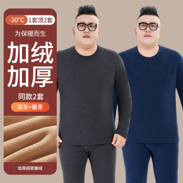 南极人加肥加大码保暖内衣男士加绒加厚胖子300斤秋衣秋裤套装冬 深灰+藏青 4XL