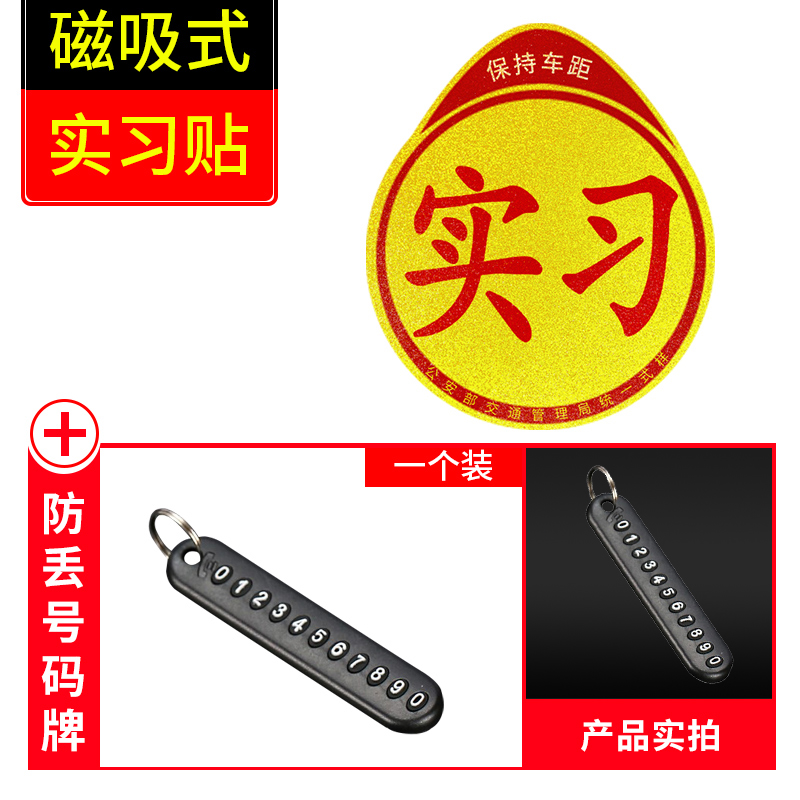 实习车贴女司机新手上路创意标志汽车贴纸磁性车用划痕遮挡反光1 磁吸式实习贴1片装+防丢号码牌(一个装)