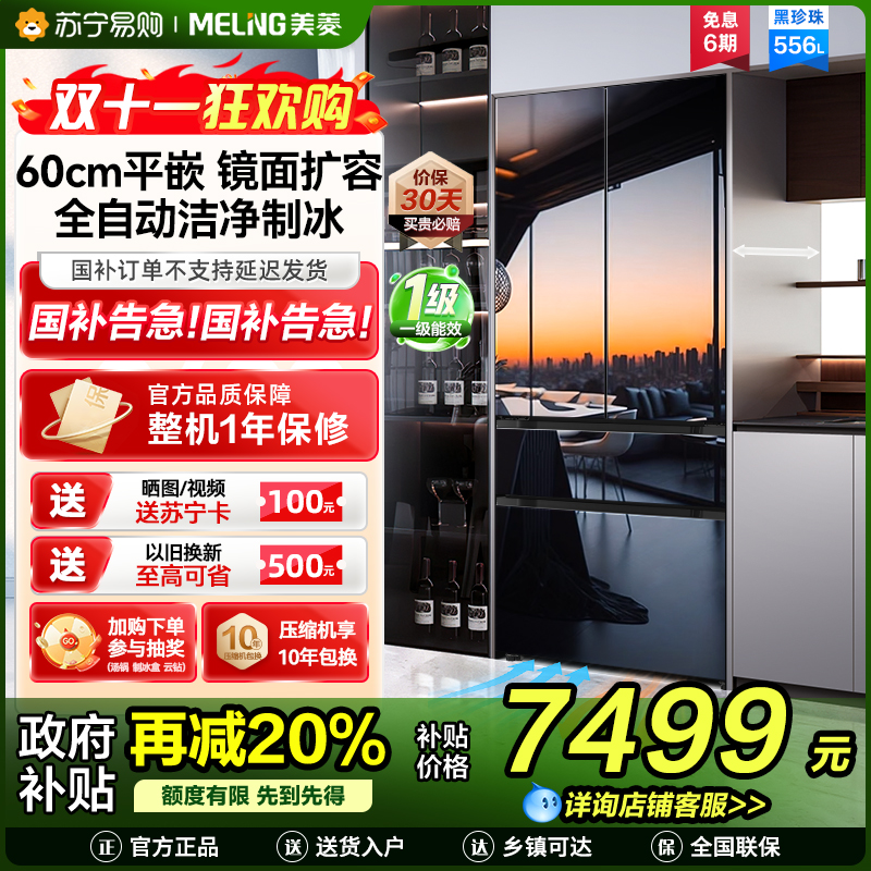 美菱黑珍珠法式四门冰箱BCD-556WFPU9BIZX 556升风冷主动除菌自动制冰变频镜面玻璃一级能效国家补贴以旧换新