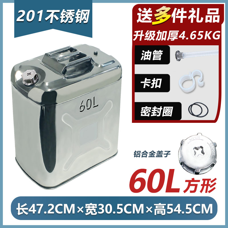 加厚304不锈钢汽油桶30L20升10L40L柴油壶加油桶汽车备用油箱5升_808 【201】升级加厚方形不锈钢60L