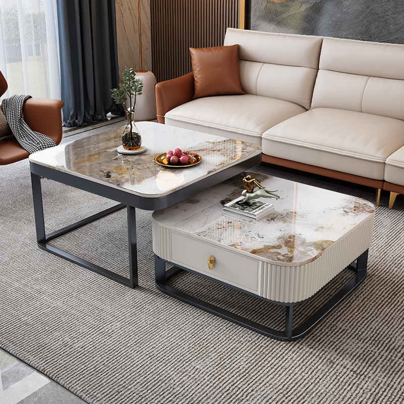 青木川意式轻奢简约现代岩板正方形茶几北欧客厅家用茶几桌泡茶桌咖啡桌创意小户型收纳储物柜小茶几边桌网红家具 茶几+白箱体+黑色框架