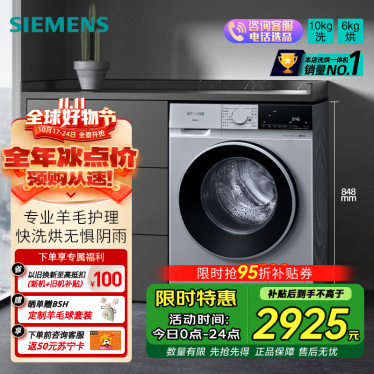 西门子 全新无界系列10公斤洗烘一体机全自动变频滚筒洗衣机家用 蒸气护理 专业羊毛洗 支持国家补贴 WN52E1U80W
