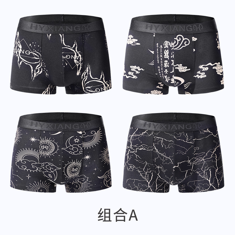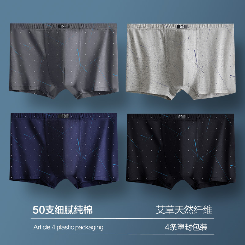 恒源祥男士内裤纯棉平角裤男加大码四角短裤头棉男生宽松夏 XXXL 4774藏青+浅灰+黑色+深灰