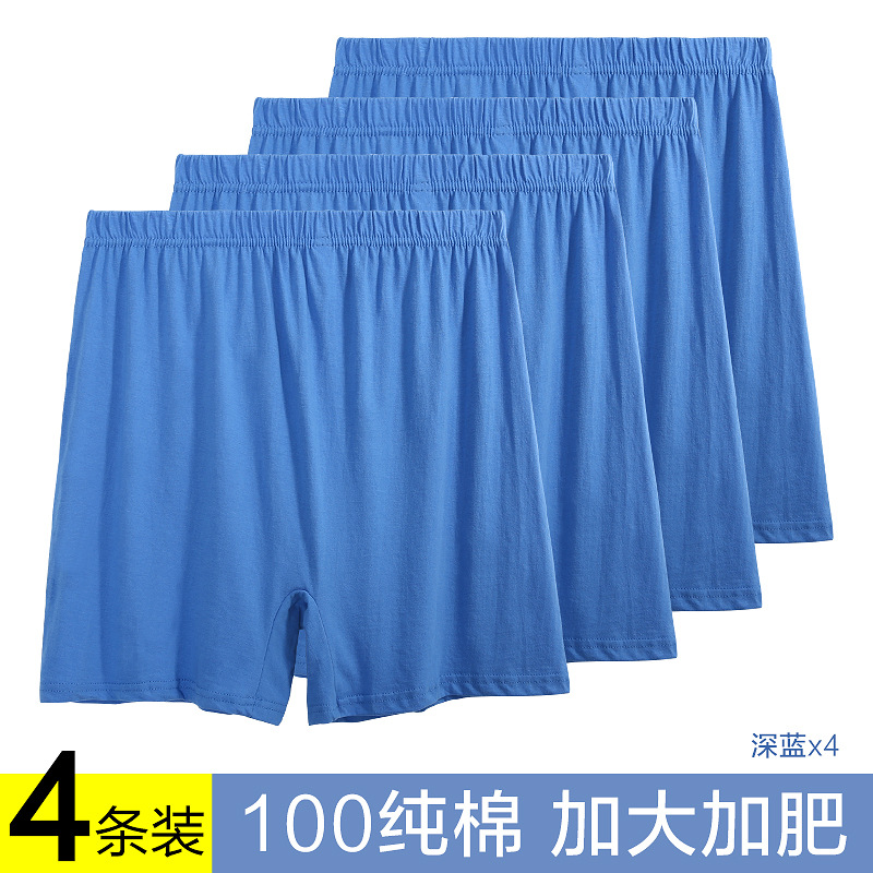 恒源祥男士内裤纯棉平角裤夏季透气内裤中老年宽松加肥加大老头裤 195/5XL 4深蓝