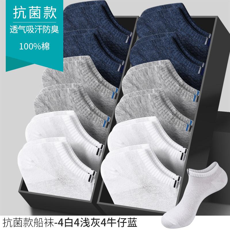 恒源祥袜子男士短袜船袜夏天薄款纯棉防臭吸汗透气低帮全棉春夏季_376 100%纯棉防臭男船袜 抗菌提花款-4白4浅灰4牛仔蓝