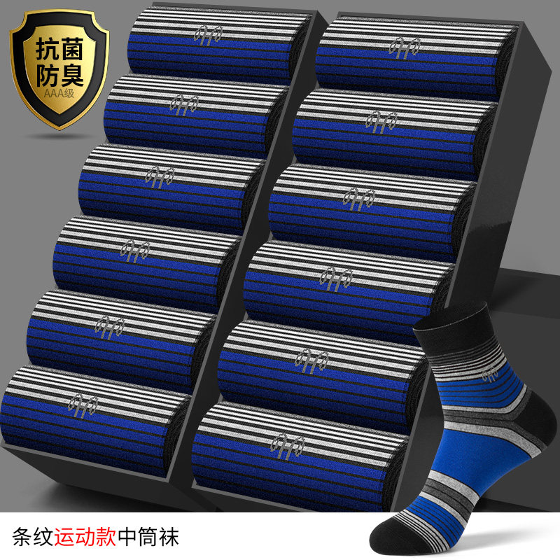 恒源祥袜子男士纯棉中筒秋冬季加厚款防臭吸汗长筒长袜运动全棉袜_435 均码【纯棉袜收藏加购|闪电发货】 26-纯棉抗菌运动款【12黑色】共12双