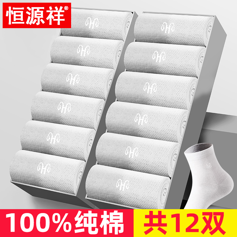 恒源祥袜子男士中筒袜纯棉夏季薄款中老年爸爸袜防臭透气男袜 均码(39码-44码纯棉防臭) 白色超值12双装