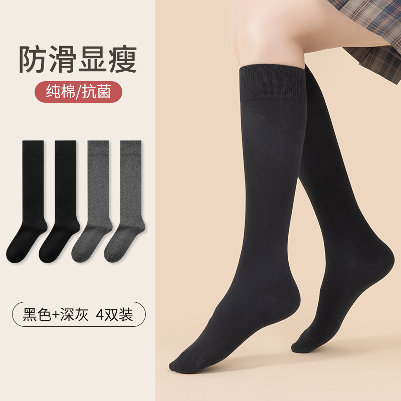 恒源祥袜子女高筒纯棉四季款小腿袜纯色简约女学生长袜潮_667 均码【35-39码】 【纯棉抗菌小腿袜】2黑2深灰